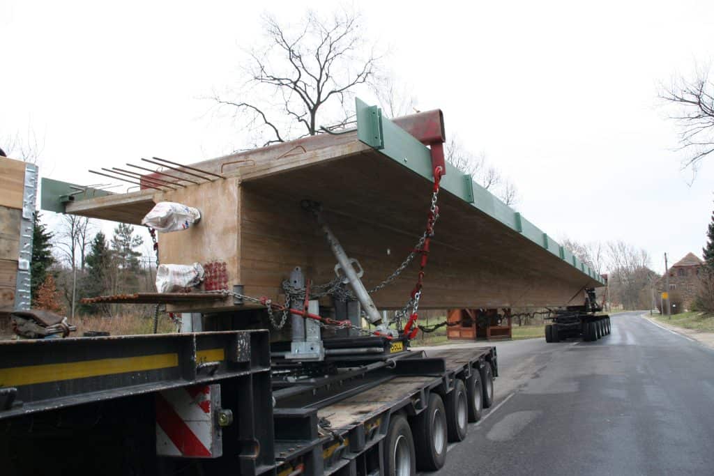 -Antransport und Montage des Fertigteils bei begrenztem Platz auf der Baustelle